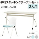 フォールディングテーブル スタッキングチェア テーブル チェア【P5倍1/15 13-15時&最大1万円クーポン1/9-15】 会議用テーブル チェア セット 2人用 幅1500×奥行450mm 幕板なし ワークテーブル ミーティングテーブル ミーティングチェア スタッキング 会社 HST-1545-STC-12