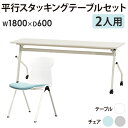 フォールディングテーブル スタッキングチェア テーブル チェア【P5倍1/15 13-15時&最大1万円クーポン1/9-15】 会議用テーブル チェア セット 2人用 幅1800×奥行450mm 幕板なし ワークテーブル ミーティングテーブル ミーティングチェア スタッキング 会社 HST-1845-STC-12
