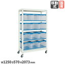 コンテナ付収納 棚 工具収納 工具保管 収納用品 作業場 工場【P5倍1/15 13-15時&最大1万円クーポン1/9-15】 マルチプルラック サカエ コンテナ収納タイプ 移動式 単体 固定棚4段 幅1250×奥行570×高さ2073mm 直径100mmゴム車 コンテナ付 仕分け棚 日本製 MR-1950BLC