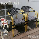 チェア オープンカフェ パリ レトロ チェック 手編み かわいい【P5倍2/15 13-15時&最大1万円クーポン2/15】 アームチェア 2脚セット ガーデンチェア ダイニングチェア ガーデニファニチャー エクステリア ラタンチェア カフェ テラス ベランダ 庭 おしゃれ PLS-CH-2P