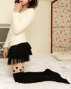 Piedo フェイクサイハイタイツ Wハート柄 黒 日本製 M-Lサイズ レディース フェイクタイツ ニーハイ風 p-sc2006