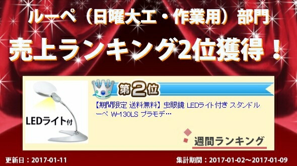 ルーペ スタンド LEDライト付き 2倍 130mm W-130LS 送料無料 プラモデル 読書 手芸 ネイル 刺繍 卓上 虫眼鏡 拡大鏡 おしゃれ 池田レンズスペック