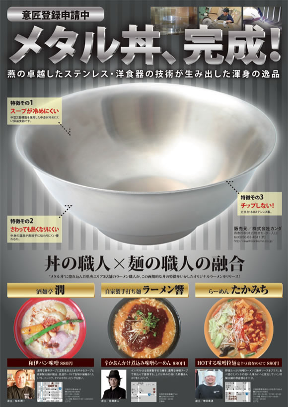 適正容量:1200cc ※日本製※ カンダオリジナル メタル丼 ステンレス オールミラー磨き仕様 387068 (日本製・国産・中空2重構造・2重丼・どんぶり)