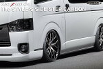 重厚なハイエースのフェイスをシャープで戦闘的な顔つきにモディファイ、 フェイスの印象が激変するフロント用カーボン製エアロモジュールです