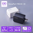 卵サイズでPCも充電可能で持ち運びに便利なACアダプター 65W以上出力 小さい おしゃれ Type-C typec タイプc cタイプ PD Type-A【お買い物マラソン】CIO NovaPort TRIO2 67W【2C1A】 GaN充電器 NovaIntelligence搭載 世界最小級 USB-C×2 + USB-A 3ポート USB ACアダプター コンセント 小型 Type-C 急速充電器 軽量 タイプC iPhone Android Macbook Pro iPad Pro CIO-G67W2C1A-N2