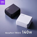 PC充電可能で持ち運びに便利なACアダプター type-c 140W【お買い物マラソン】CIO NovaPort TRIO2 140W3C USB-C 2ポート PD 急速充電器 [NovaIntelligence NovaEngine搭載] ACアダプター type-c iPhone 16 Android Galaxy Macbook iPad向け ノートPC