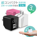 3cmのコンパクトサイズなのに2台同時充電出来る急速充電器USB充電器 コンセント 軽量 コンパクト 2ポート 同時充電 急速充電器 ACアダプター 2.4A iphone ipad Xperia galaxy 携帯電話充電器 タブレット 同時充電 SmartIC スマホ アイフォンX iphone8 plus