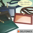 ネックストラップ付き両面窓付きカードケースノアール リールストラップ付両面IDケース カードケース 革製