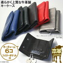 柔らかく厚めの牛革が鍵を保護。スタンダードなキーケース本革製キーケース レザーラップキーホルダー 6連 コンパクト