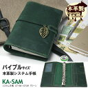 牛革の素朴な質感、風合いが人気のシステム手帳 グリーン 聖書サイズ B6サイズ 本革 高級 社会人 お洒落 かっこいい メモリフィル レフィル付 送料無料 革本革製システム手帳 バイブルサイズ6穴 緑色革の手帳