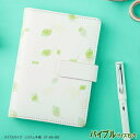 かわいいシステム手帳 バイブルサイズ6穴 女性に人気の手帳白い革に緑葉の模様のシステム手帳 おしゃれ バイブルサイズ