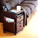サイドテーブル キャスター ナイトテーブル モバイルステーション 木製 送料無料 キャスター 【本州、四国は送料無料】モバイルスタンド付多機能サイドテーブル 木目調ナチュラル チョコレートブラウン リビングワゴンテーブル ダークブラウン 多機能 大容量サイドテーブル 木製 【inte_D05】