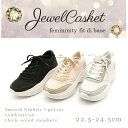 ジュエルキャスケット スニーカー キラキラ輝く足元で、あなたの魅力を引き出す【OUTLET】レディース スニーカー JEWEL CASKET ジュエルキャスケット 厚底 歩きやすい 履きやすい コンビ キラキラ スムース 華やか カッコイイ ラインストーン グリッター ビジュー 星 ホットフィックス 幅広 3E程度 婦人 靴 ブラック シルバー