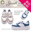 【チャーム×ビジューでキラリ】デニムスエード調スニーカーで足元を格上げ【OUTLET】レディース スニーカー JEWEL CASKET ジュエルキャスケット デニム スエード調 厚底 ひも靴 シューズ 美脚 脚長効果 レースアップ チャーム ビジュー キラキラ 華やか かわいい オシャレ 婦人 靴 春 夏 ベージュ ブルー