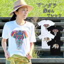 カラフルな曼荼羅デザインの象がプリントされた半袖Tシャツ。男女兼用 ユニセックス コットン100% 大きいサイズ ヒンドゥー かぶらない ギフト プレゼント ホワイト ブラック半袖 Tシャツ エスニック カジュアル ゾウ 象 曼荼羅 M L XL マンダラ カラフル アジアン 山ガール カットソー 綿100% コットン 春 夏 秋 冬 メンズ レディース ゆったり 大きめサイズ【メール便可 1.5cm】【5】