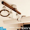 シーリングライト 4灯 リモコン インダストリアル ビンテージ おしゃれ 照明 デザイン照明 インテリア照明 スポットライト LED対応 居間用 天井照明【送料無料】スポットライト シーリングライト 4灯 リモコン付 LED対応 おしゃれ 照明 DINER4:ダイナー4 インダストリアル 西海岸 カリフォルニア 古材風 ウッド ガラス リビング用 居間用 ダイニング 寝室 リノベーション コテージ 古民家 点灯切替 段調光 HERMOSA ハモサ (CP4(PX10