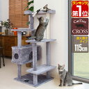 1段20cm前後の低段ローステップ設計、子猫はもちろん、足腰の弱ったシニア猫ちゃんにも。大きめワンルーム&てっぺん台座、紐巻き爪とぎポールまでを約60cm四方のコンパクトサイズに。【楽天1位】キャットツリー タワー 据え置き スリム 省スペース 高さ115cm×幅60cm未満 低段 ハウス付き 猫タワー 子猫 シニア猫 運動不足 猫ちゃん CROSS115 爪とぎ スクラッチ 組み立て 大型猫 多頭 猫 ねこ ペット おしゃれ おすすめ 1年保証 ★[送料無料]