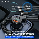 送料無料 カーチャージャー 3wayケーブル一体型 車載充電器 シガーソケット アルミ合金製 PD 65W+24W 2ポート【BLIXIA】車載充電器 シガーソケット 3ウェイケーブル一体型 最大89W PD 急速充電 USB-A×2ポート 2台同時充電 超小型 軽量 アルミ合金製 iPhone iPad Pro Air Google Samsung Pixel AirPods Switch Android各種