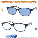 太陽光で色づく不思議レンズ 便利な調光サングラス光に当たると色が変わる! 調光メガネ完成品セット 眩しさから目を守る! フォトクロミックレンズ UVカット 調光レンズ使用 調光ブルー AG281-3