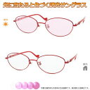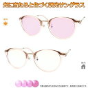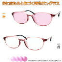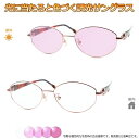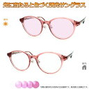 太陽光で色づく不思議レンズ 便利な調光サングラス光に当たると色が変わる! 調光メガネ完成品セット 眩しさから目を守る! フォトクロミックレンズ UVカット 調光レンズ使用 調光ピンク