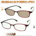 太陽光で色づく不思議レンズ 便利な調光サングラス光に当たると色が変わる! 調光メガネ完成品セット 眩しさから目を守る! フォトクロミックレンズ UVカット 調光レンズ使用 13065J クリア 調光グレー