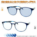 太陽光で色づく不思議レンズ 便利な調光サングラス光に当たると色が変わる! 調光メガネ完成品セット 眩しさから目を守る! フォトクロミックレンズ UVカット 調光レンズ使用 FLL-1003 2 ネイビー