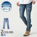 スキニーテーパードジップ付きストレッチデニムカーゴパンツメンズパンツ メンズカーゴパンツ メンズデニム メンズジーンズ カーゴパンツ デニムパンツ ジーンズ ジーパン メンズ スリム 細身 ストレッチ スキニー テーパード かっこいい ファッション 40代 50代 メンズファッション ストレッチパンツ ちょいワル イケオジ