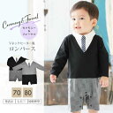 取り外しできる蝶ネクタイが可愛いフォーマルロンパース【キッズ・ベビー】フォーマル蝶ネクタイロンパース(725004)70-80cm 子供スーツ サスペンダー風 カバーオール 衣装 子供服 長袖 蝶ネクタイ 赤ちゃん 男の子 ハーフバースデイ 入卒園式 七五三 お食い初め 結婚式 おしゃれ カジュアル 1点までメール便可