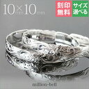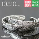 表面がフラットでスクロール模様サイドにも飾り彫り・厚み有ハワイアンジュエリー バングル ペアバングル 幅10mm 刻印無料 サイズが選べる オープンバングル ペア2本セット フラット 厚み有サイドに飾り彫り シルバー925 太め | カップル 夫婦 クリスマス プレゼント 【品番:BM5027-10P】