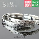 表面がフラットでスクロール模様サイドにも飾り彫り・厚み有ハワイアンジュエリー バングル ペアバングル 幅8mm 刻印無料 サイズが選べる オープンバングル ペア2本セット フラット 厚み有サイドに飾り彫り シルバー925 太め | カップル 夫婦 クリスマス プレゼント 【品番:BM5027-8P】