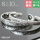 表面がフラットでスクロール模様サイドにも飾り彫り・厚み有ハワイアンジュエリー バングル ペアバングル 幅8mm&10mm 刻印無料 サイズが選べる オープンバングル ペア2本セット フラット 厚み有サイドに飾り彫り シルバー925 太め | カップル 夫婦 クリスマス プレゼント 【品番:BM5027-8-10P】