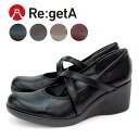 パンプス 黒 歩きやすくて美脚効果もあるヒール♪ウィンターセール&PT10倍開催!7日0時から10日23時59分まで!Re:getA リゲッタ R-600 ウェッジヒール クロスベルト 6cmヒール 歩きやすい パンプス 黒 履きやすい