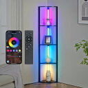 64インチ コーナーシェルフ フロアランプ リビングルーム用 調光機能付き LEDキュリオキャビネット スタンディングランプ ディスプレイシェルフ付き 背の高いフロアランプ 頑丈なコーナーディスプレイキャビネット - ファンシーエッジ ブラック