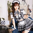 コスプレ衣装 コスチューム 水玉 白 黒 モノトーン[正規品](即納)コスプレ コスプレ衣装 メイド ウエイトレス ドット ブラック ホワイト お揃い 可愛い 女性 レディース 一式 マリームーン【Malymoon/マリームーン】【10224】