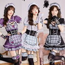 コスプレ コスプレ衣装 コスチューム メイド服 ウェイトレス 黒 灰色 紫 チェックスカート コスチューム 衣装 レディース 女性 大人 可愛い かわいい ハロウィンコス Halloween[正規品](即納)ハロウィン コスプレ メイド ウエイトレス ゴシック 仮装 メイド メイドドレス ブラック ライトグレー パープル フリル セット 一式 セクシー 女性 レディース malymoon マリームーン【9962】