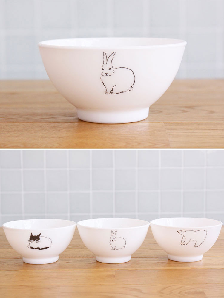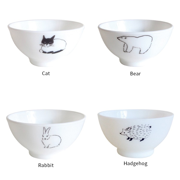シンプルなミルク色の美しいボウルに、シンプルに黒一色で描かれた動物たち。ため息がこぼれるほどにかわいいボウルです。繊細なタッチで描かれた動物たちはどれもかわいくて、選ぶのに迷ってしまいます。