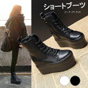 22.0〜25.0cm 10cm厚底で存在感抜群のレースアップブーツ、ライブやコスプレにも◎♪バックジッパー付き ショートブーツ 厚底 ブーツ オールシーズン使えるので一足あると便利!ブーツ レディース ショートブーツ チャンキーヒール ショートブーツ 厚底 ぺたんこ 歩きやすい ヒール10cm フラット コスプレ 厚底ブーツ 大きい ブーツ 美脚 厚底 疲れない 安定感 歩きやすい 通勤 オフィス ゴスロリ コスプレ 2色 送料無料