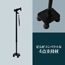 足元がコンパクトな4点支持杖アルミ製4点支持杖 ブラック スモールベース バンド付き