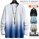 グラデーションtシャツ メンズ 長袖Tシャツ ロンティー クルーネック ユニフォーム長袖 tシャツ メンズ グラデーション Tシャツ ロングtシャツ 綿100% ロングティーシャツ オシャレ ロンt ロンティー カットソー トップス メンズファッション おしゃれ ロングスリーブTシャツ 長袖tシャツ