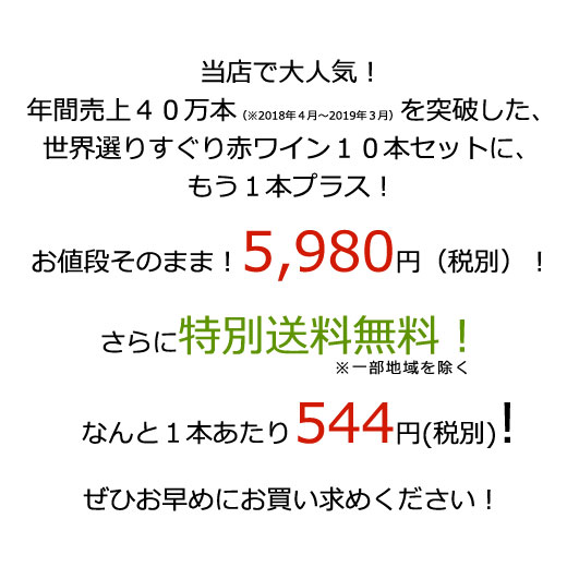 スーパーで買う格安なワインと同じくらいのお値段なので、それほど期待していませんでしたか、まだ1本目ですか、とても美味しいです。残りの10本も期待大なので、楽しみながら飲みたいと思います。