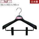 ジャケットと一緒にスカートやパンツもかけられるクリップ付きハンガー