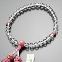 【約8ミリ】喜芳工房 念珠 数珠 女性用 約8ミリ 上質 本水晶 四天 紅水晶 正絹2色房【京のいろは】【略式数珠 京念珠 ローズクォーツ 京都 天然石 宗派共通 葬式 法要 じゅず きほう 透明 ピンク マイ数珠 JIM 2000200401445】【数珠袋付き】【送料無料】