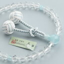 【約8ミリ】数珠 女性用 約8ミリ 本水晶 アクアマリン 正絹2色梵天房【略式数珠 京念珠 京都 水晶 クォーツ 4月の誕生石 3月の誕生石 宝石 宗派共通 小田巻梵天房 葬儀 法要 贈り物 水色 青色 ブルー 8mm マイ数珠 RJ JIM 2000200403487】【数珠袋付き】【送料無料】