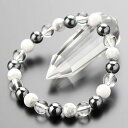 【約8mm】約8mm ハウライト ヘマタイト 本水晶 デザインブレスレット【パワーストーン 天然石 菱苦土石 赤鉄鉱 腎臓石 4月の誕生石 お守り プレゼント 贈り物 マーブル 白 ホワイト メタリック お洒落 2000700103016】【メール便220円のみ】