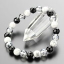 ≪デザインブレスレット≫<br>約12ミリ 本水晶 約10ミリ 黒オニキス・ヘマタイト 約8ミリ シルバーオーラ ブレスレット【パワーストーン 天然石 ブラックオニキス お守り BIM 108120097】【メール便送料220円】