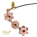 オーダーメイドつくってハッピー公式【送料無料】金具パーツ変更OK ラッピング無料Happy トリプル 6ベン 花 ピンク チャーム ストラップ 日本製 本革 キラキラ スワロフスキー レディース 大人 かわいい おしゃれ 女性 キー リング ホルダー バッグチャーム レザー 革 アクセサリー 車 鍵 iphone スマホ 携帯 プレゼント 根付 フラワー 雑貨 ブランド