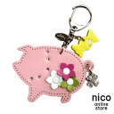 オーダーメイドつくってハッピー公式【送料無料】金具パーツ変更OK ラッピング無料Happy お花が ピンクの ぶた フラワー キーホルダー 日本製 本革 革 キラキラ スワロフスキー レディース 大人 かわいい 可愛い おしゃれ 女性 子供 キーリング ストラップ バッグチャーム レザー 革 アクセサリー 車 鍵 プレゼント ギフト 誕生日 動物 雑貨 ブランド