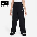 ナイキ スポーツウェア クラブ フリース ジュニア (ガールズ) ワイドレッグ パンツ NIKE ウェア ボトムス キッズ パンツ Kids スポーツ 起毛加工 軽量 スウェット ゆったり あったか 黒 FA24
