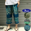 レーヨン素材のさらされ・ゆるっとパンツ♪ルームウエアにも。エスニック ハーフパンツ タイパンツ エスニックファッション 夏 メンズ ガウチョパンツ ルームウエア メンズ レディース 男女兼用 ウエストゴム