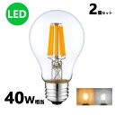全方向白熱電球のように光が広がるのLEDフィラメント電球LEDフィラメント電球 エジソン電球 LED電球 40W相当 E26 クリアタイプ 全方向型 LED透明電球 ledクリア電球 電球色 昼光色 2個セット